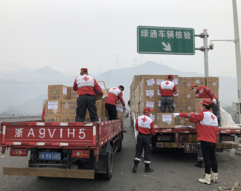 抗击疫情,众志成城。2月1日16点30分开始,富阳区实行交通管制.杭州红十字狼群救援队队员从1月26日开始就没有休息,但是他们依然坚守在岗位上,协助相关单位打包、装运米、面、油、蔬果等生活必需品,运送棉被、帐篷等防疫物资到各防控执勤点,截止2月1日晚,5天时间狼群救援队共派出队员250多人次,参与执行转运和搭建救灾帐篷217顶,救灾羽绒被,棉服等御寒物资100多箱,口罩,防护服等物资800多箱,对核酸检测场地和防控点开展防疫消杀10次,消杀面积2万多平方米。